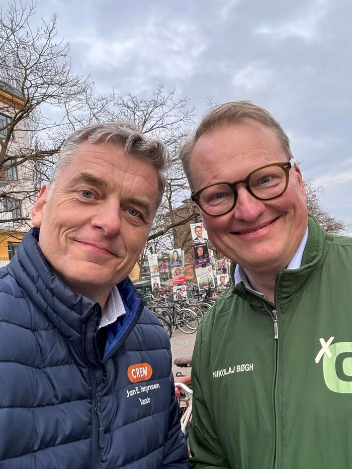 Nikolaj Bøgh og jeg hygger os i hvert fald - på trods af at vi jo kæmper om mange af de samme vælgere her på Fredeirksberg.
